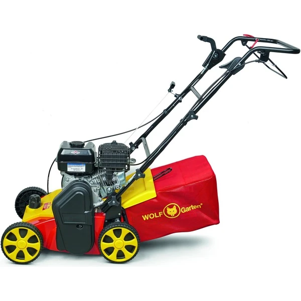 Ein Benzin-Vertikutierer ist zum Vertikutieren größerer Rasenflächen die beste Wahl. Er hat außerdem den Vorteil, dass man nicht auf das Stromkabel achten muss. Der Benzin-Vertikutierer VA 357 B von WOLF-Garten ist mit einem kraftvollen Briggs-&-Stratton 4-Takt Motor ausgestattet. Die Arbeitstiefe lässt sich 6-stufig zentral einstellen. Für komfortables Sammeln sorgt der große Fangkorb mit 45 Litern Fangvolumen. Der Pult-Holm ist für einfachen Transport und Lagerung klappbar.