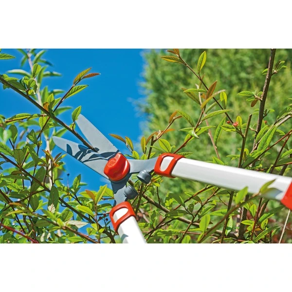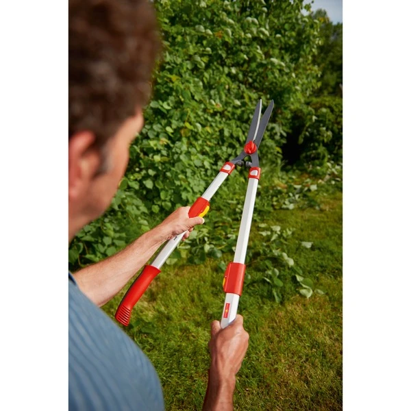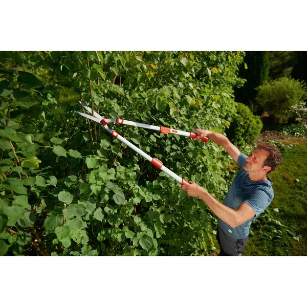 Hat man nicht viele Meter Hecke zu schneiden, dann ist eine manuelle Heckenschere von WOLF-Garten genau richtig. Die Teleskop-Heckenschere HS 1000 T verfügt über antihaftbeschichtete Klingen, ausziehbare Teleskop-Griffe, eine bis zu 2-fache Kraftübertragung dank der neuen Schneidkopftechnologie und stoßdämpfende gelenkschonende Gummipuffer. Dank der leichtgängigen Mechanik schneidet man kräftig, ohne selbst viel Energie aufwenden zu müssen. Der integrierte Astabschneider ermöglicht problemloses Schneiden, wenn einmal dickere Äste dabei sein sollten. Die langlebige Klinge ist äußerst verschleißarm und gewährleistet viele Jahre einen perfekten Schnitt.
