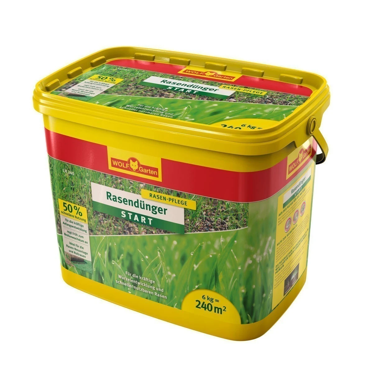 Der Wolf Garten Rasen-Starter-Dünger LH240 ist abgestimmt auf die rasche Anfangsentwicklung junger Rasenpflanzen.