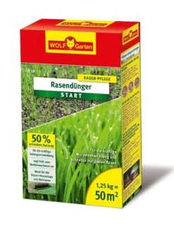 Der Wolf Garten Rasen-Starter-Dünger LH50 ist abgestimmt auf die rasche Anfangsentwicklung junger Rasenpflanzen.